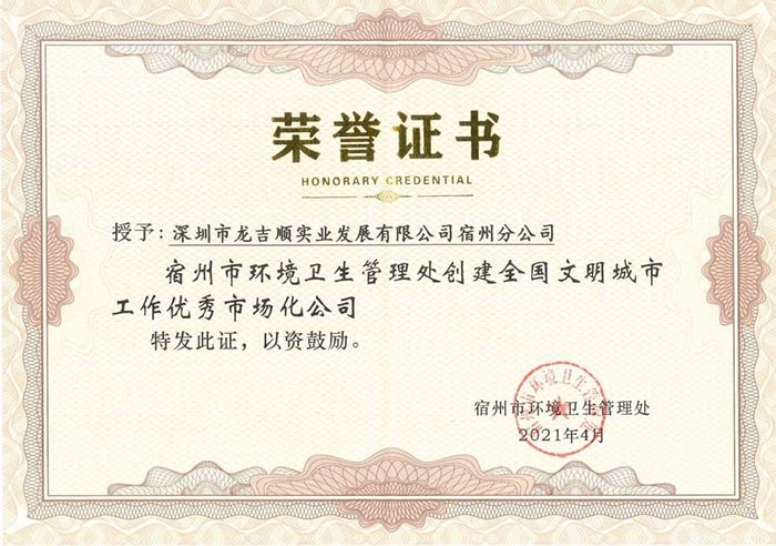 熱烈祝賀深圳市龍吉順實業發展有限公司晉中分公司白根牛、王毛毛榮獲晉中市市容環境衛生管理局頒發的“最美環衛人...